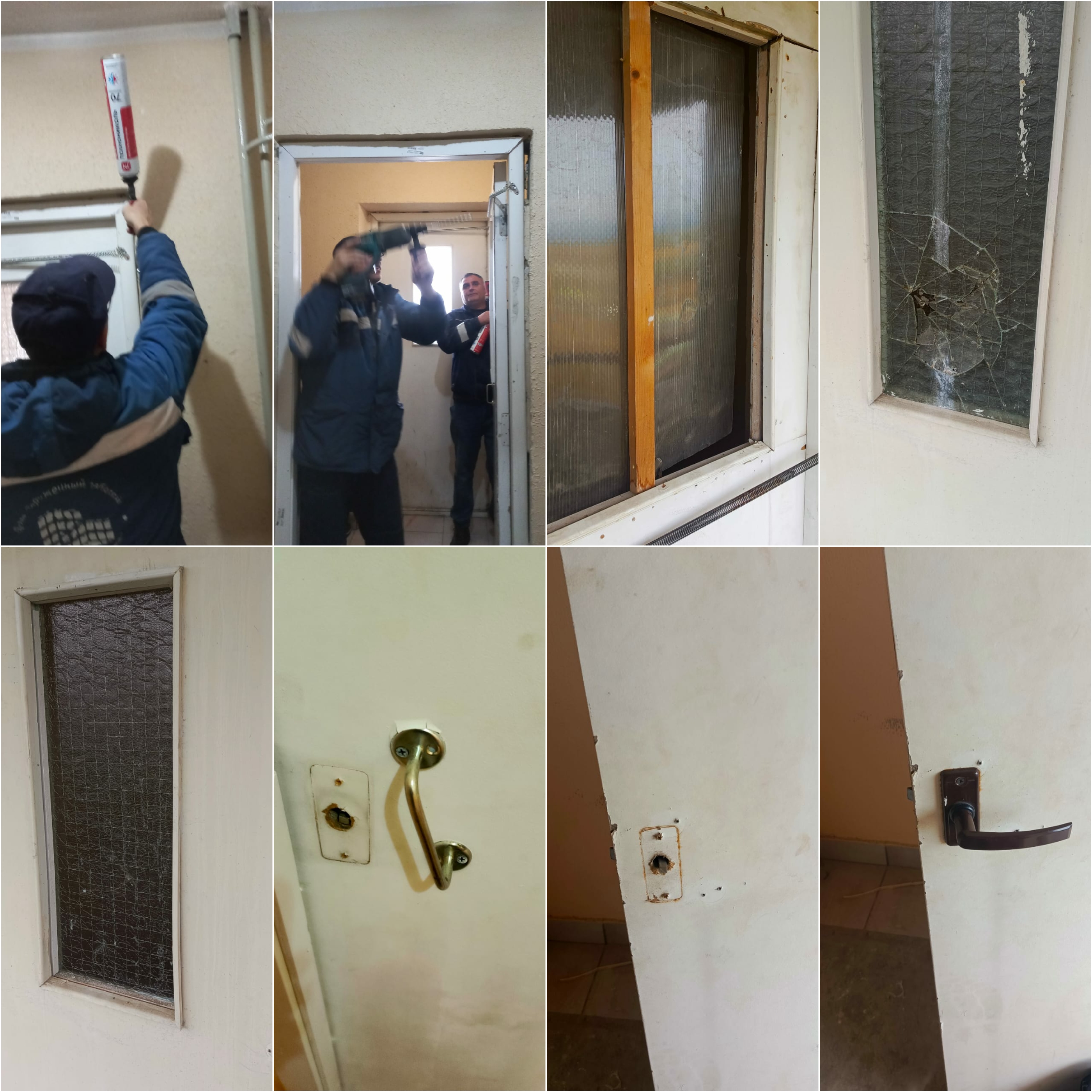 — Ремонт дверей входных групп (ул. Кутузовская, 9, п.6; ул. Чистяковой, 52, п.1), дверей запасных выходов (ул. Кутузовская, 1, п.2; ул. Кутузовская, 4, п.2), переходных дверей (ул. Кутузовская, 1, п.1, 9 эт.; ул. Кутузовская, 74А) и двери консьержного помещения (ул. Кутузовская, 31, п.4);