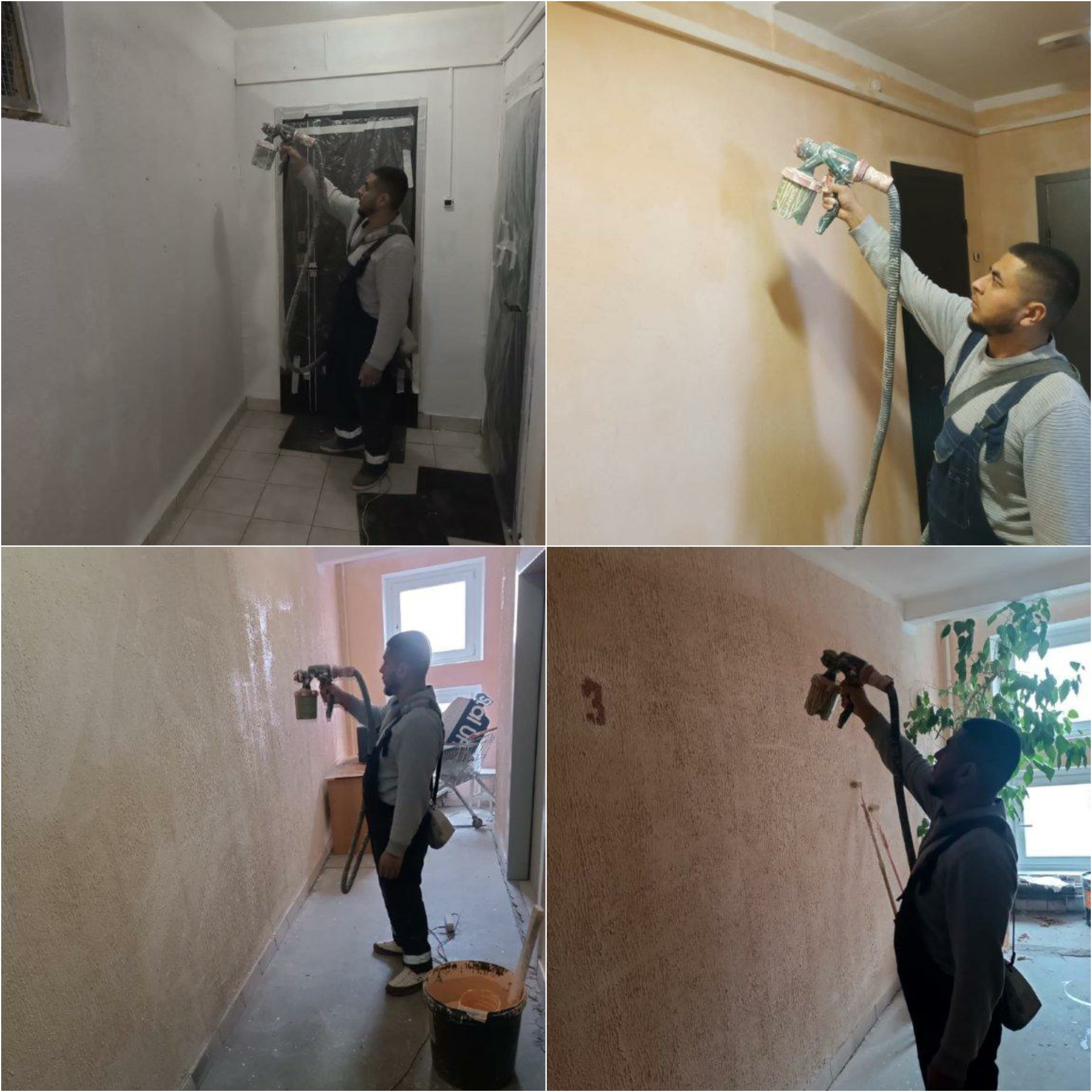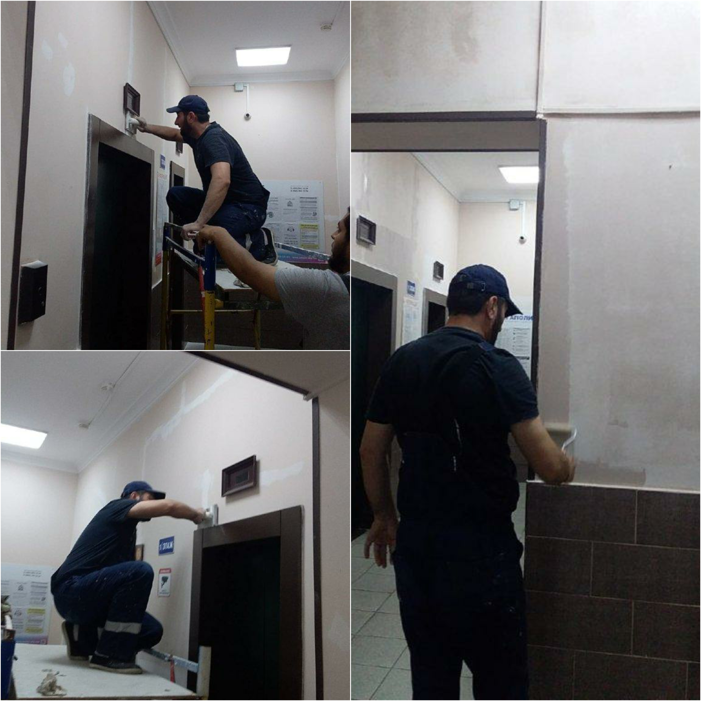 — Оштукатуривание и шпаклевание стеновой и потолочной поверхности в вестибюле (ул. Кутузовская, 7, п.2);