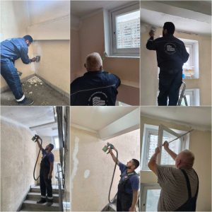 — Оштукатуривание стеновой, потолочной поверхности (1-8 эт.), оконных откосов (9-17 эт.) и покраска потолочной поверхности (16-17 эт.) на лестничных площадках (ул. Кутузовская, 9, п.1);