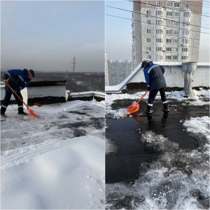 — Очистка машинного отделения от снега на кровле (ул. Чистяковой, 76, п.4).