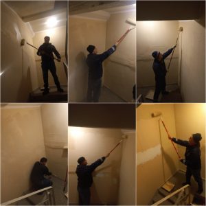 — Продолжается поэтажная покраска стеновой поверхности на лестничной площадке (ул. Кутузовская, 25, п.2, 5-10 эт.);