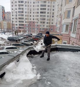 — Очистка козырьков над входными группами от снега (ул. Кутузовская, 1, 9, 25, 31, 74А, 74Б, 74В; ул. Чистяковой, 52);