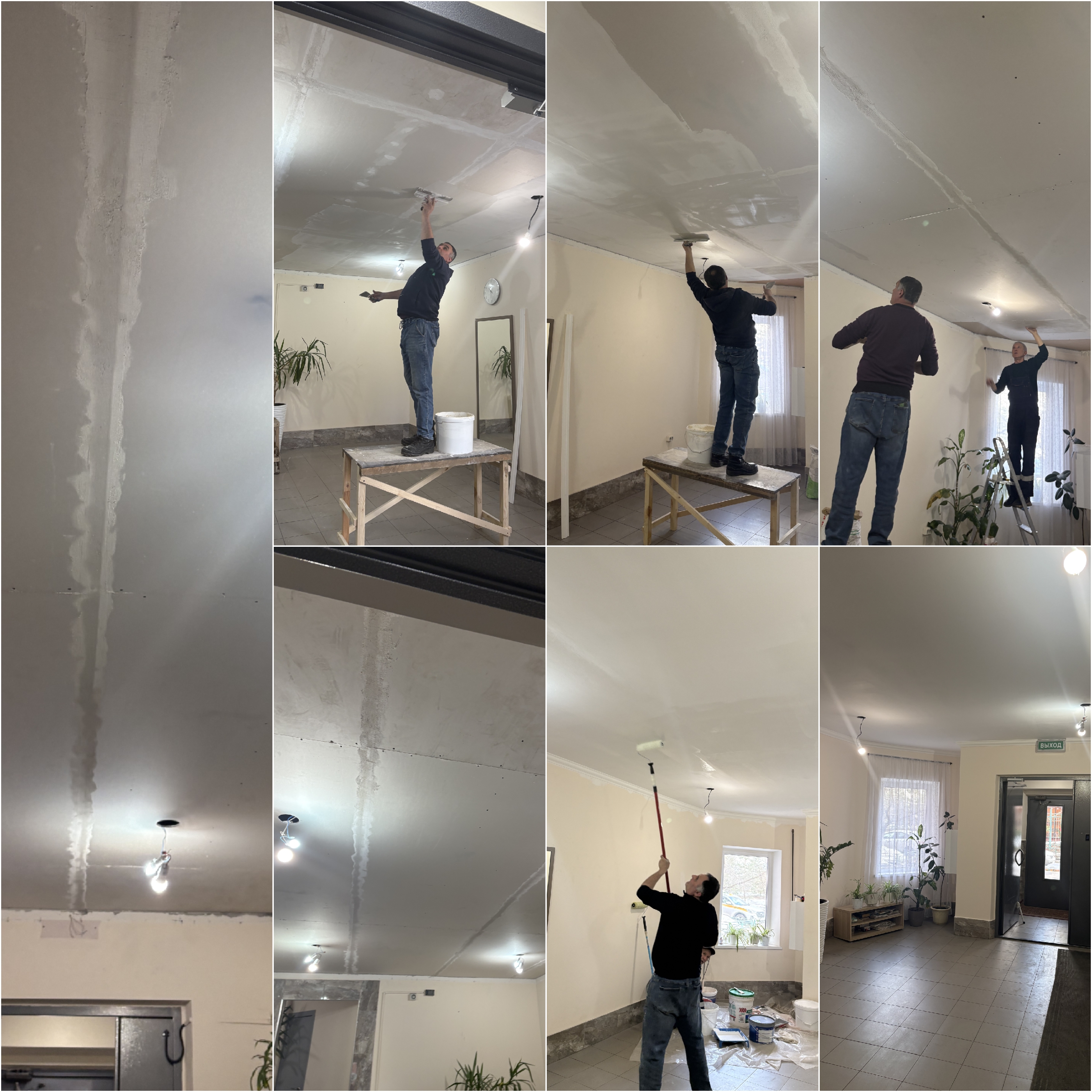 — Устранение осыпания на стеновой и потолочной поверхности с последующей покраской в тамбуре входной группы (ул. Кутузовская, 25, п.6);