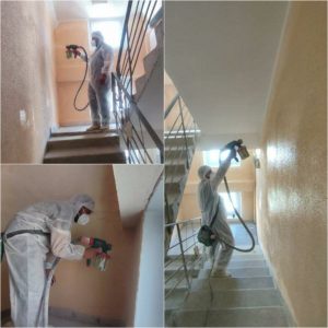 — Оштукатуривание стеновой и потолочной поверхности на лестничной площадке (ул. Кутузовская, 9, п.3, 8-17 эт.);